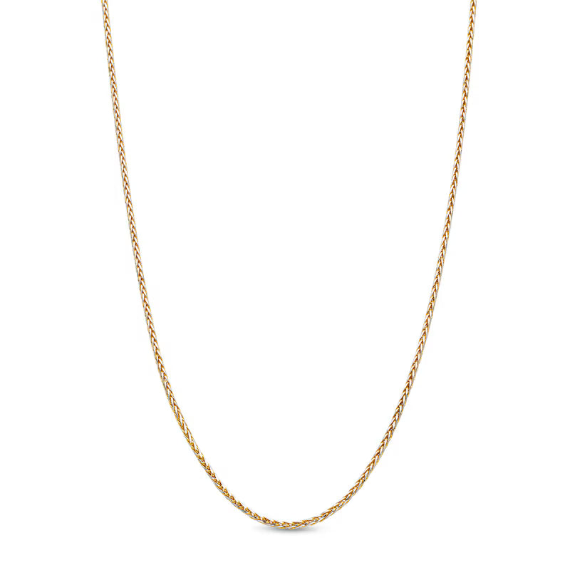 Concept essentials yellow gold wheat chain in your choice of length. Glitzy, glamourous, and perfect for any occasion! This chain is a stunner either worn plain, layered, or with a pendant!
