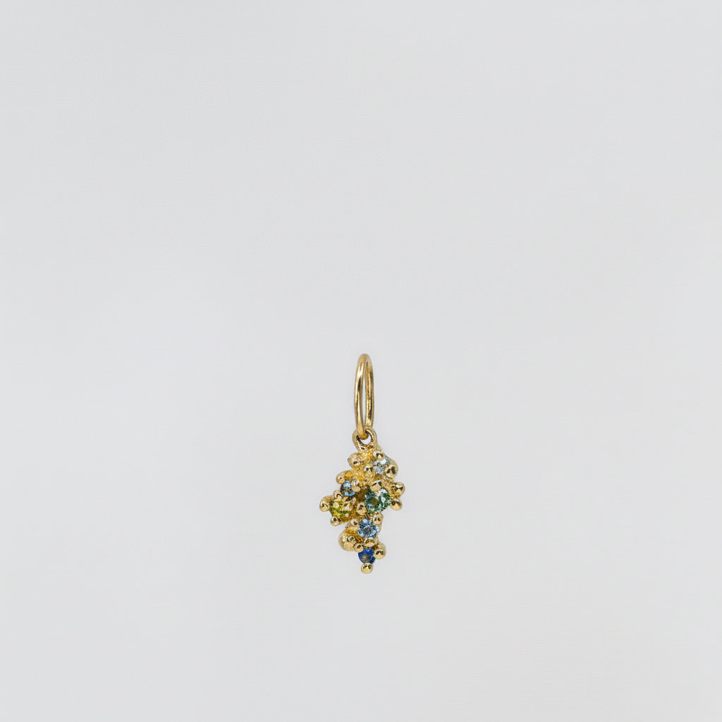 Laurie Fleming Moss charm set with blue-green sapphires.