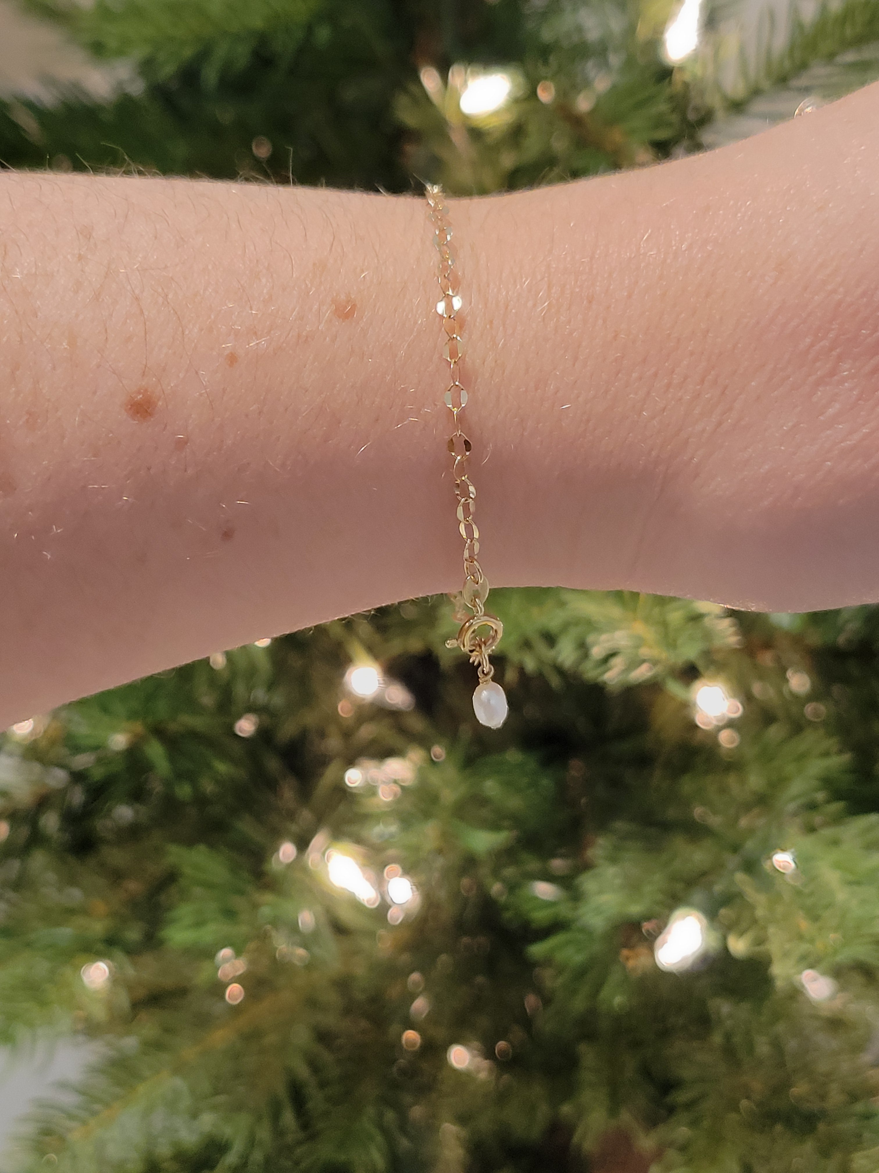 Poppy Finch bracelet set with a signature pearl dangle at the clasp of a shimmer cable chain.