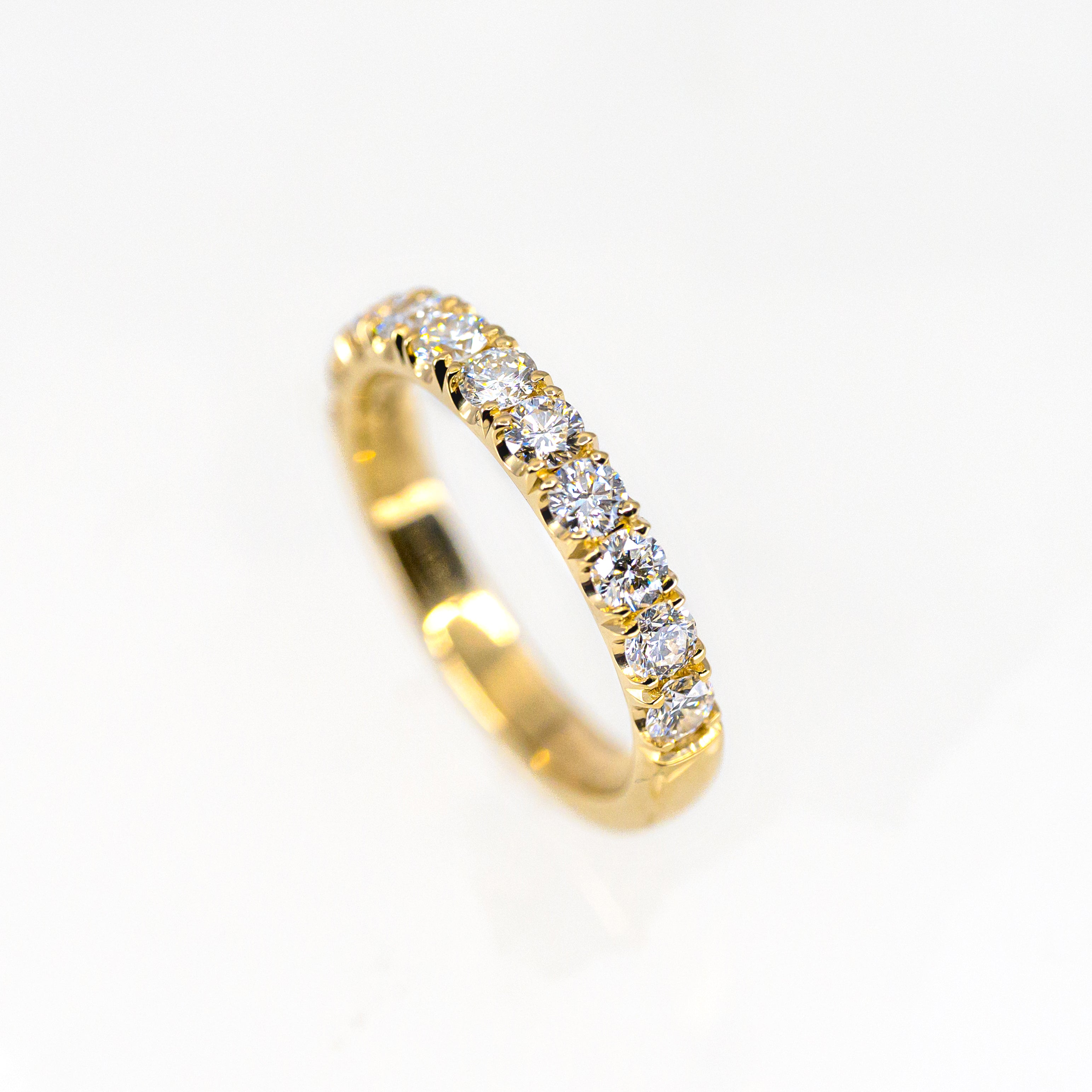 Modern Vintage Concept band u-set with round brilliant cut diamonds halfway around the band