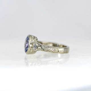 Oval Lavender Sapphire Trinity Etched in Time Ring