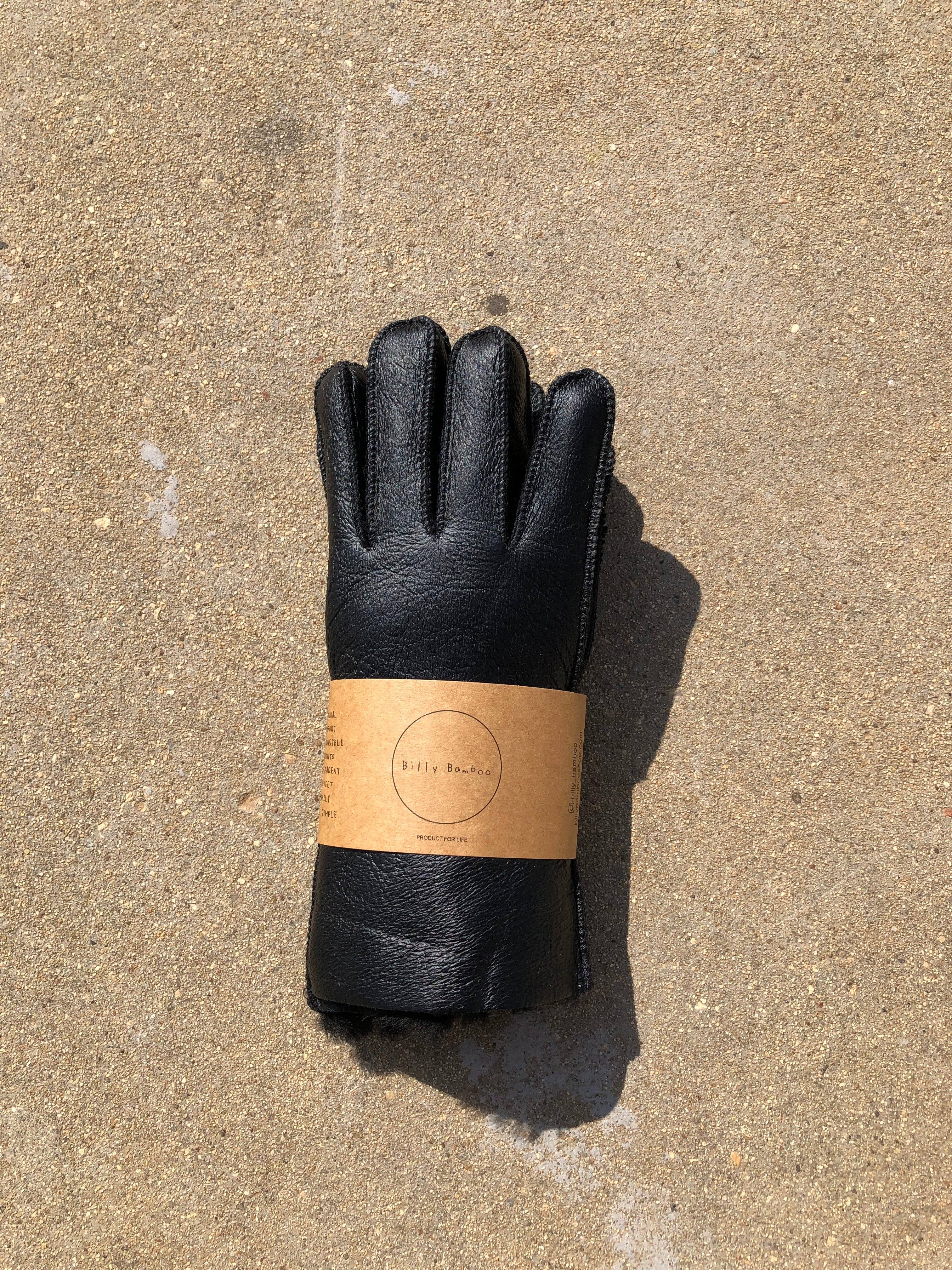 Leather Shearling Glove - Black - M/L