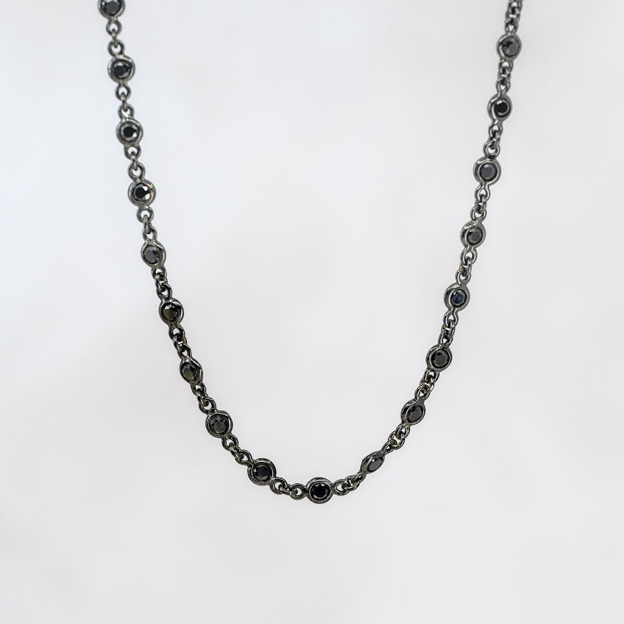 Cameo Italiano Victoria Fiori choker bezel set with black cubic zirconia linked together and a hand carved cameo at the end of the adjustable chain. The cameo features a single flower motif design, and the back has a heart print so it's fashionable either direction!