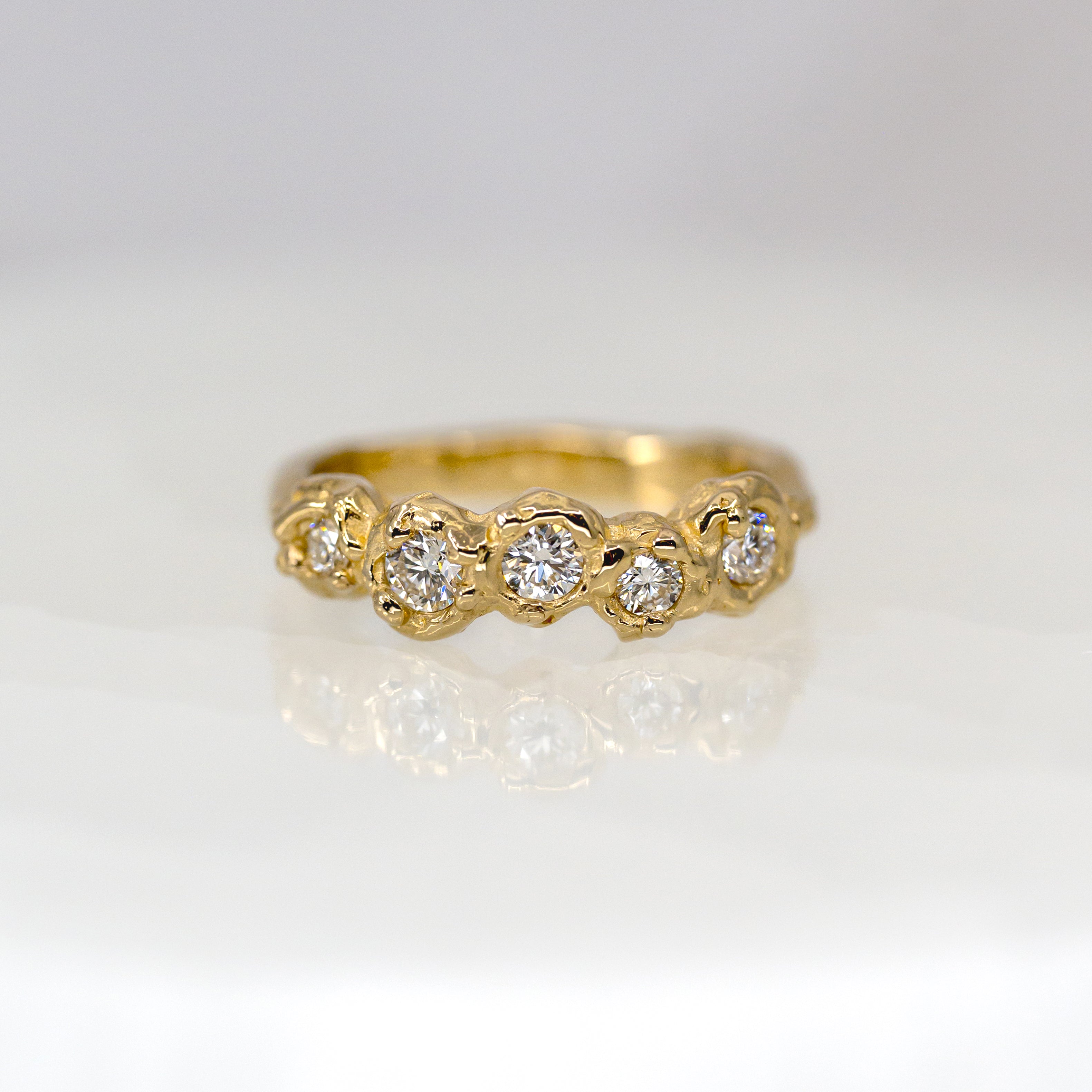 Emma Glover diamond barnacle band set with 5 round brilliant natural diamonds.