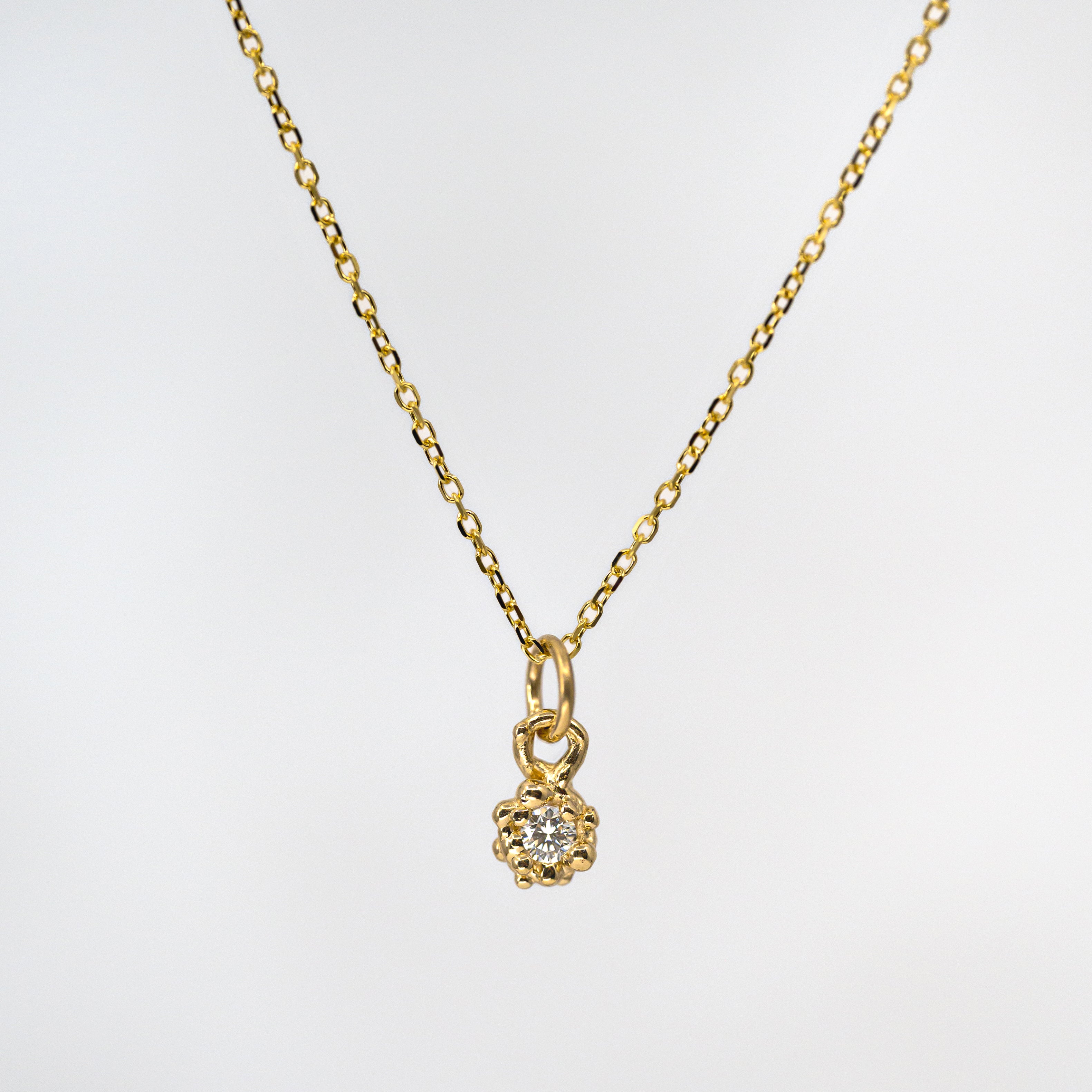 Emma Glover Mermaid Treasure pendant, set with brilliant cut natural white diamond, with hand-carved texture on diamond cut cable chain.
