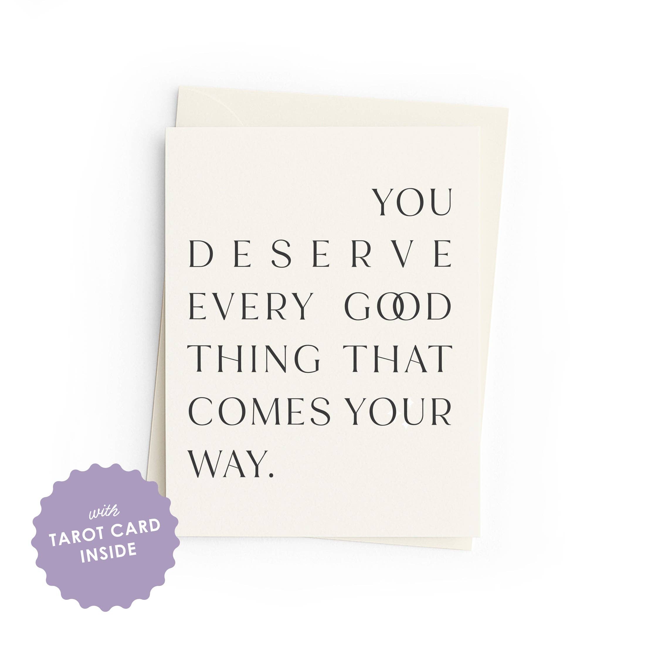 Tarot greeting cards include a one-card tarot reading, a message aligned to the moment, chosen intuitively and tucked inside. The greeting card is blank on the inside for you to include your own personal message.