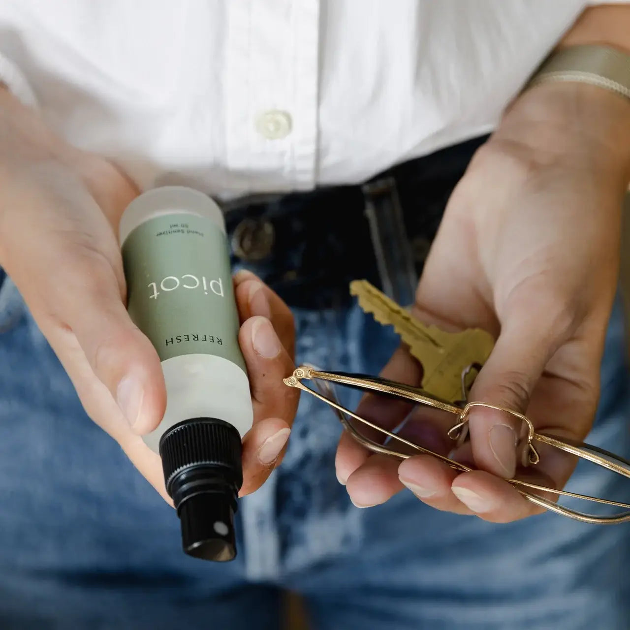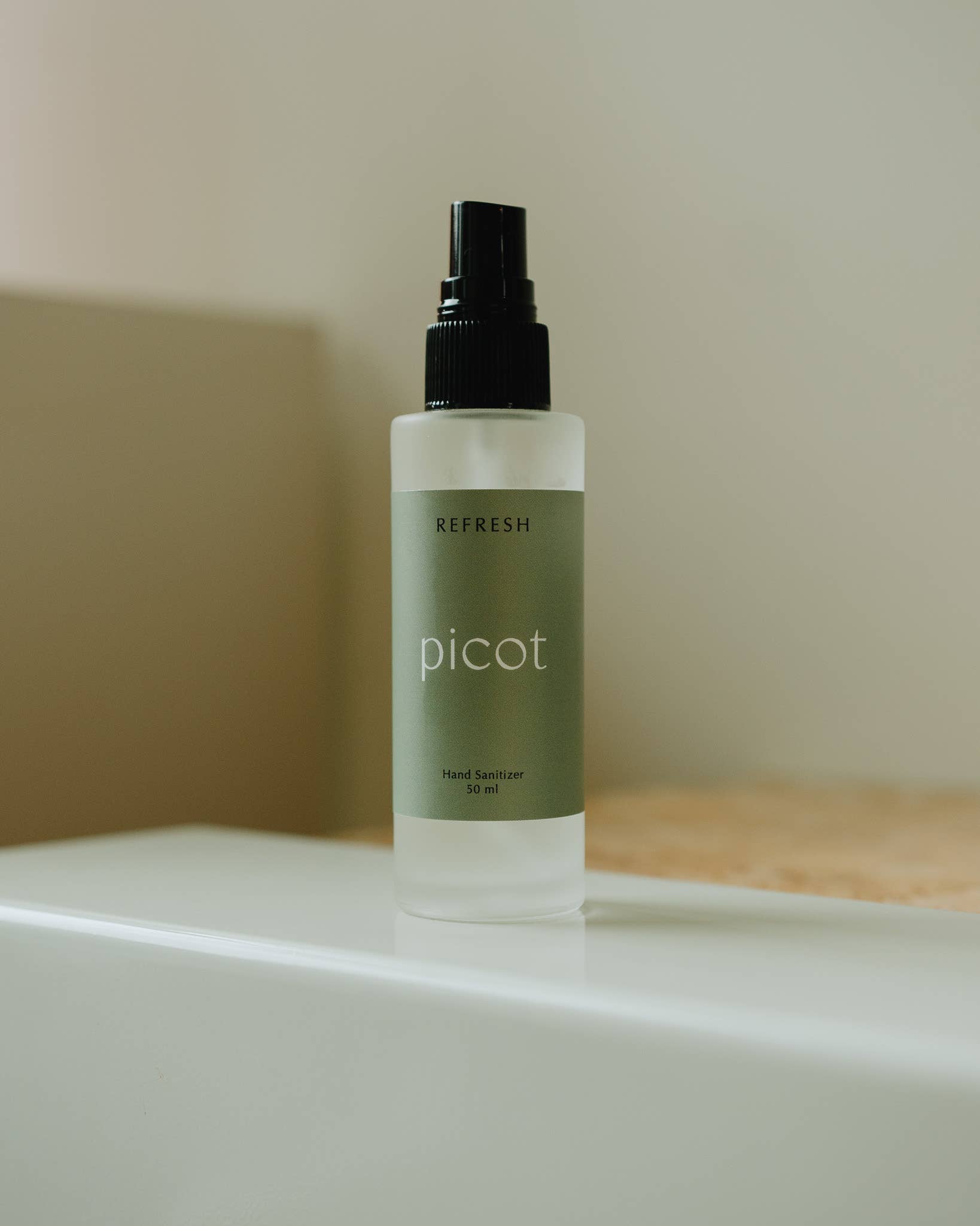 This refreshing hand sanitizer has moisturizing ingredients of aloe vera extract and coconut-derived vegetable glycerin with an invigorating natural scent of blood orange, mint, and eucalyptus rather than strong alcohol non-sticky.