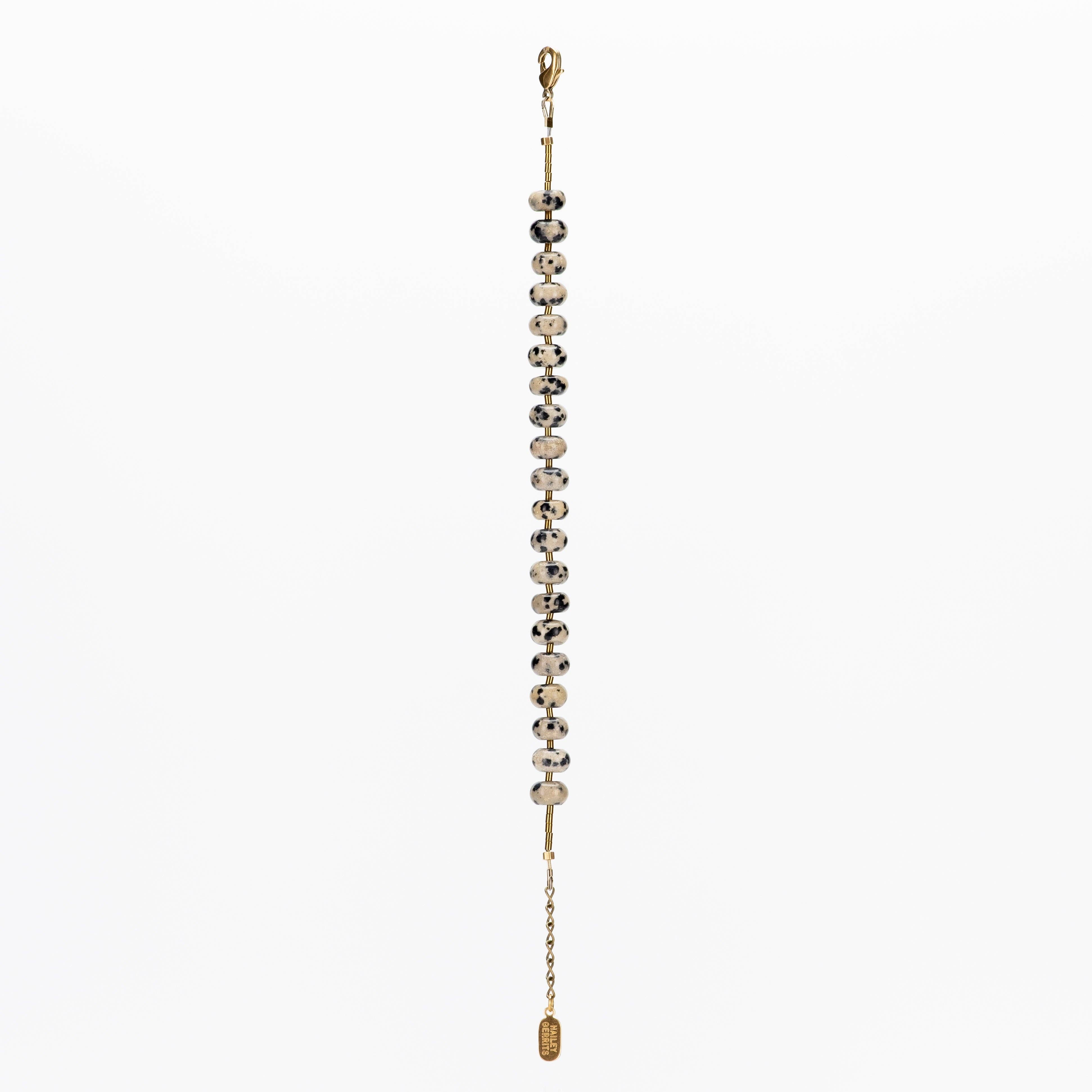Hailey Gerrits "Marlow" bracelet set with smooth dalmatian jasper beads and gold plated hematite accents. This is the perfect addition to your bracelet collection. It's large enough to make an impact all on its own, but it also layers beautifully.