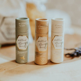 Willow Street Bees was born out of a love for creating all natural, safe, and effective skin care products. Each small batch of lip balms is crafted with care and with all of the finest ingredients, including locally sourced beeswax. The combination of beeswax and various natural oils and butters creates a luxurious balm. Each lip balm comes packaged in a biodegradable cardboard tube, because the world doesn’t need more plastic.