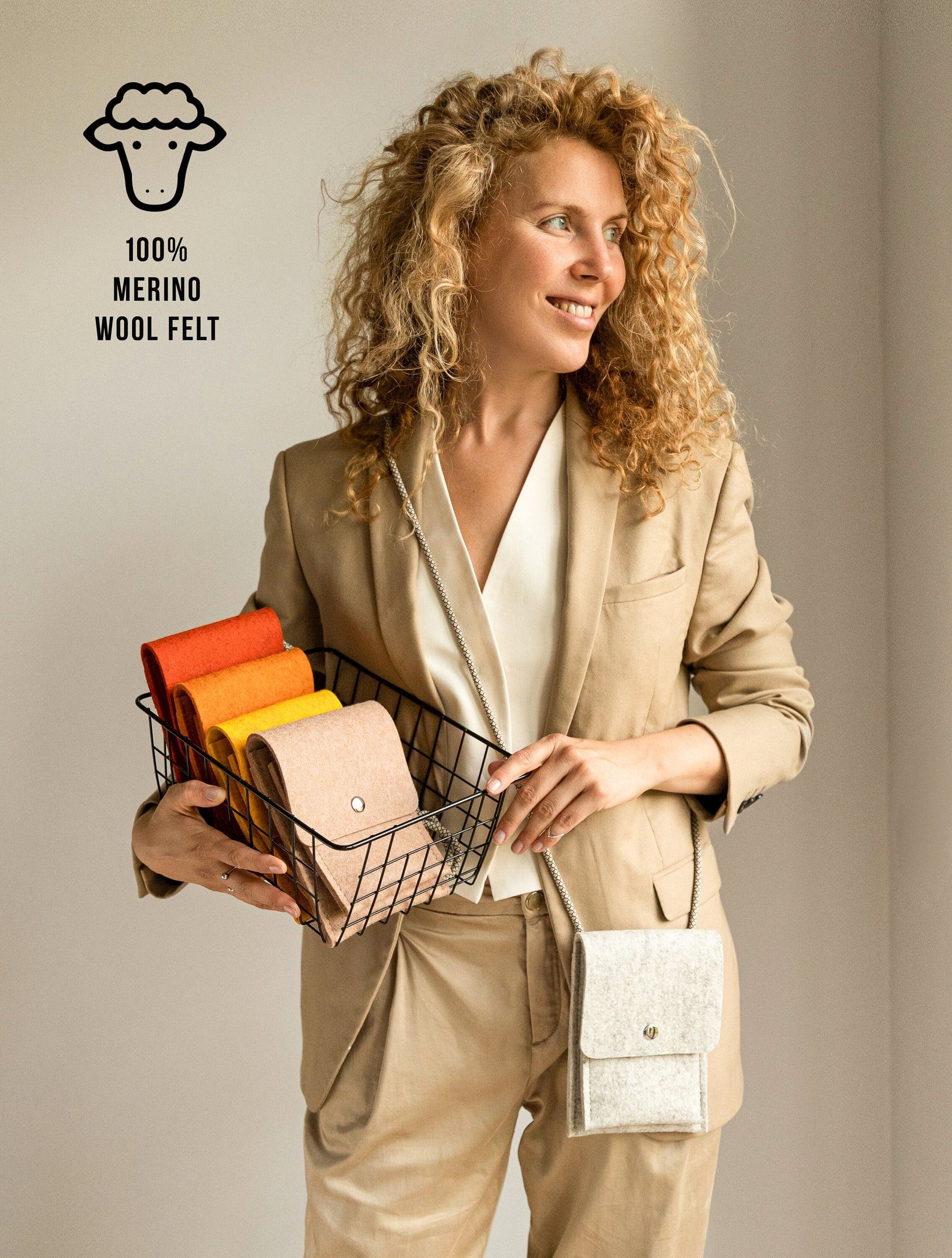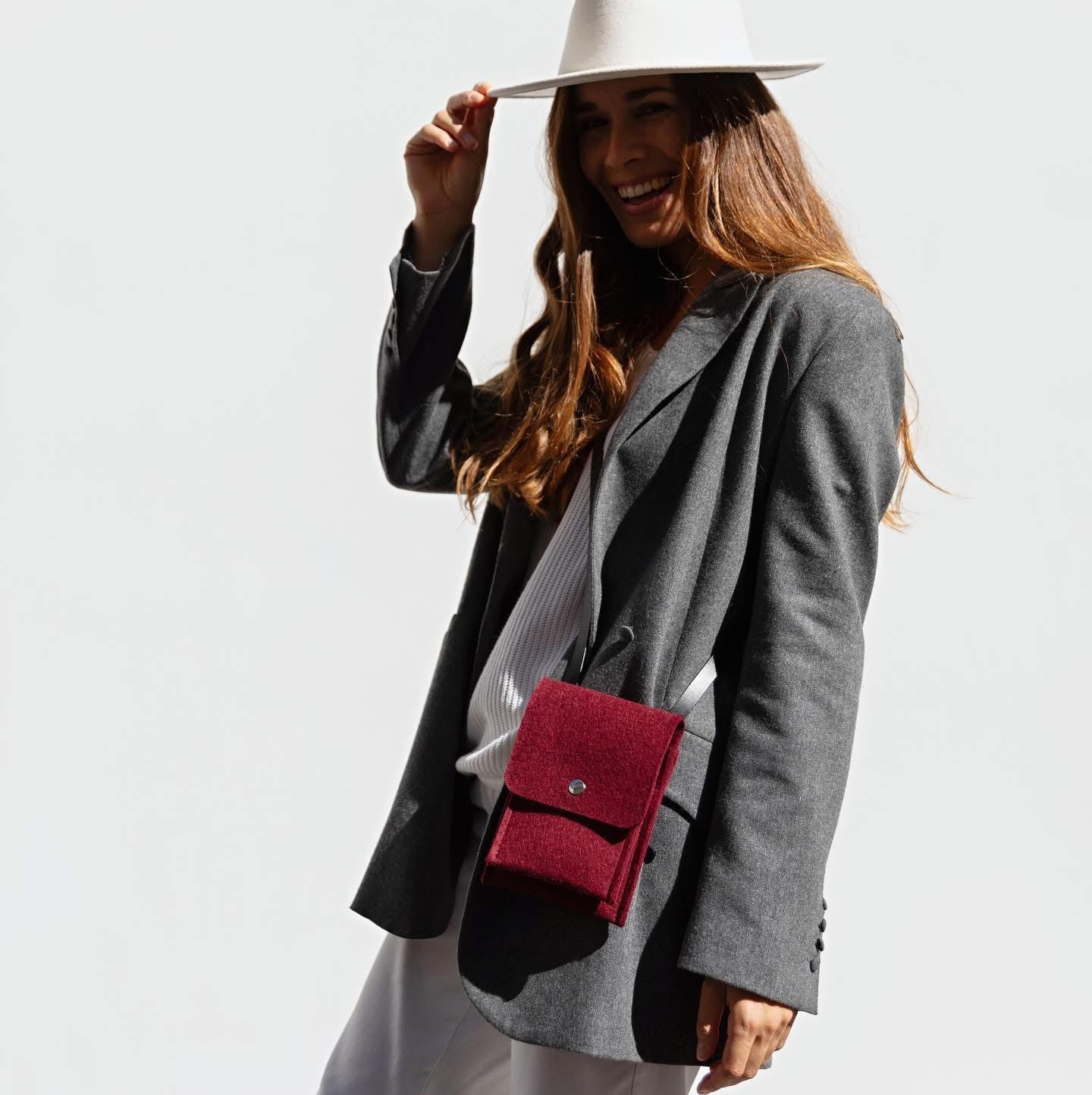 This crossbody phone bag is designed for convenience and elegance. Made from high-quality wool felt, it provides a soft and protective casing for your phone, keeping it safe from scratches and bumps. The adjustable strap ensures a comfortable fit for all.