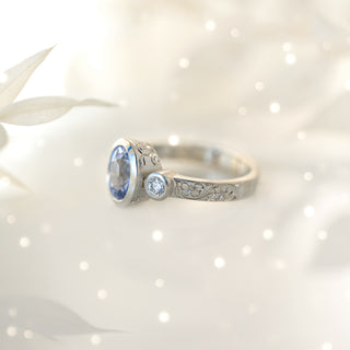 Oval Lavender Sapphire Trinity Etched in Time Ring