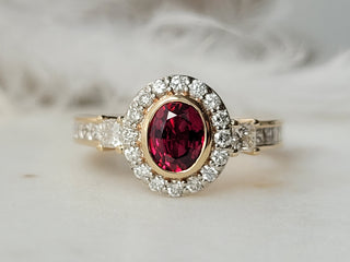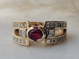 Our client came to us with a vision and hope that we could create something extraordinary with an heirloom piece she had fallen out of love with. After an initial custom design appointment and approval of the new concept, her vision became reality. What was once an unloved piece that sat in her jewelry box untouched, became a trend setter and immediately moved our client to tears. See the transformation below of this gorgeous Classically Inspired Ruby and Diamond Ring.