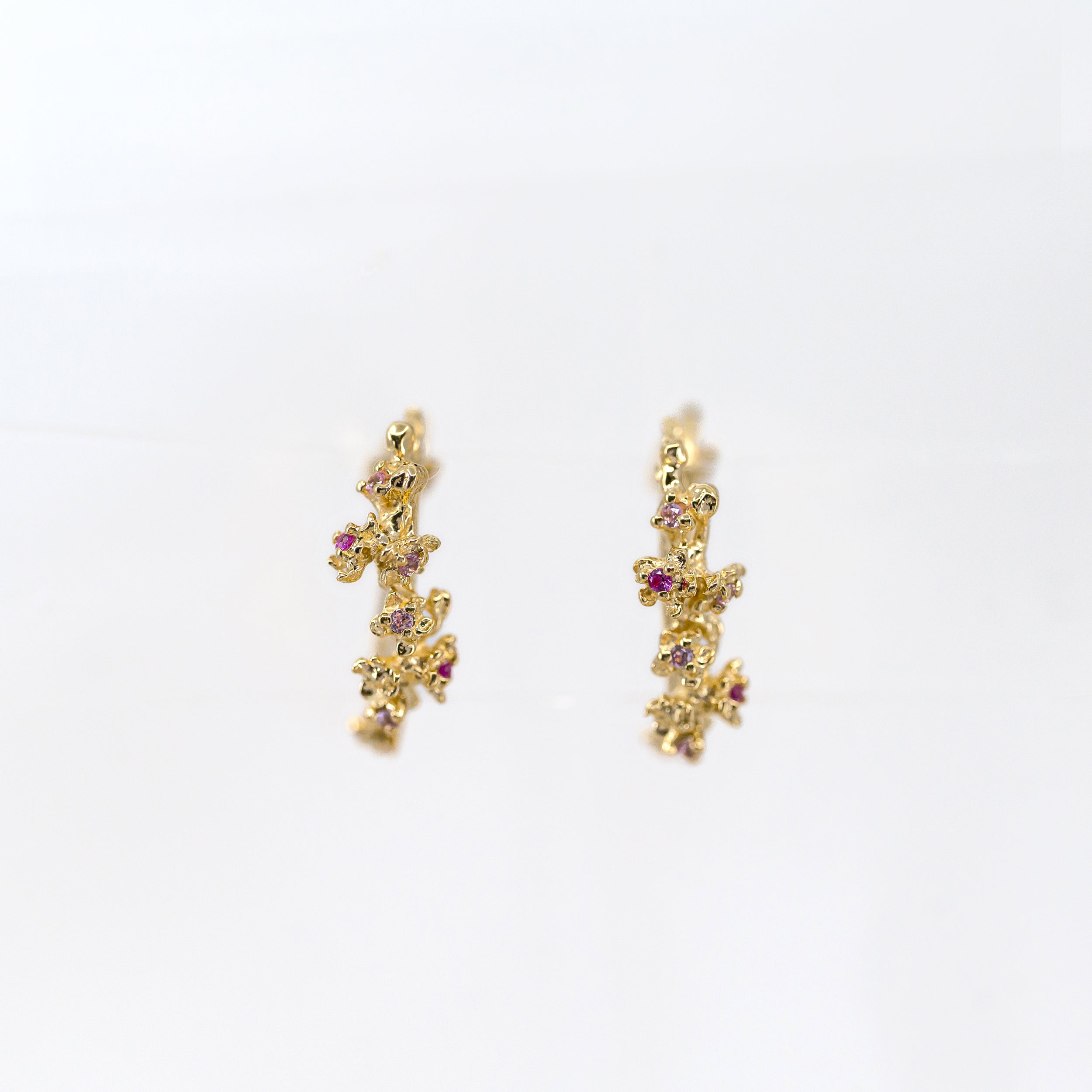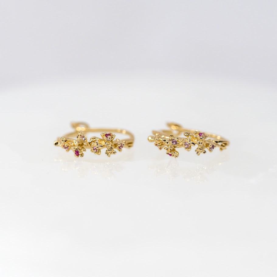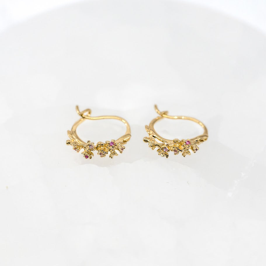 Laurie Fleming Asrai Garden Large Hoops. An eternal bouquet of gilded blooms: every petal carefully carved in miniature to float down from your lobes. Each Asrai Garden Hoop is made entirely by hand, and no two will ever be exactly alike. Cherry blossoms’ beautiful, ephemeral blooms remind us of the transience of nature and life.