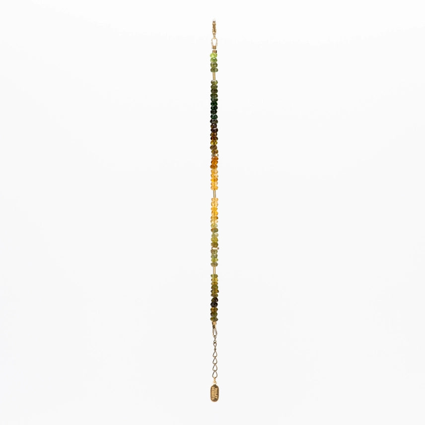 Hailey Gerrits "Autumn" Multi Tourmaline bracelet. A sparkling rainbow of orange, yellow to green tourmalines, accentuated by creative recycled brass accents