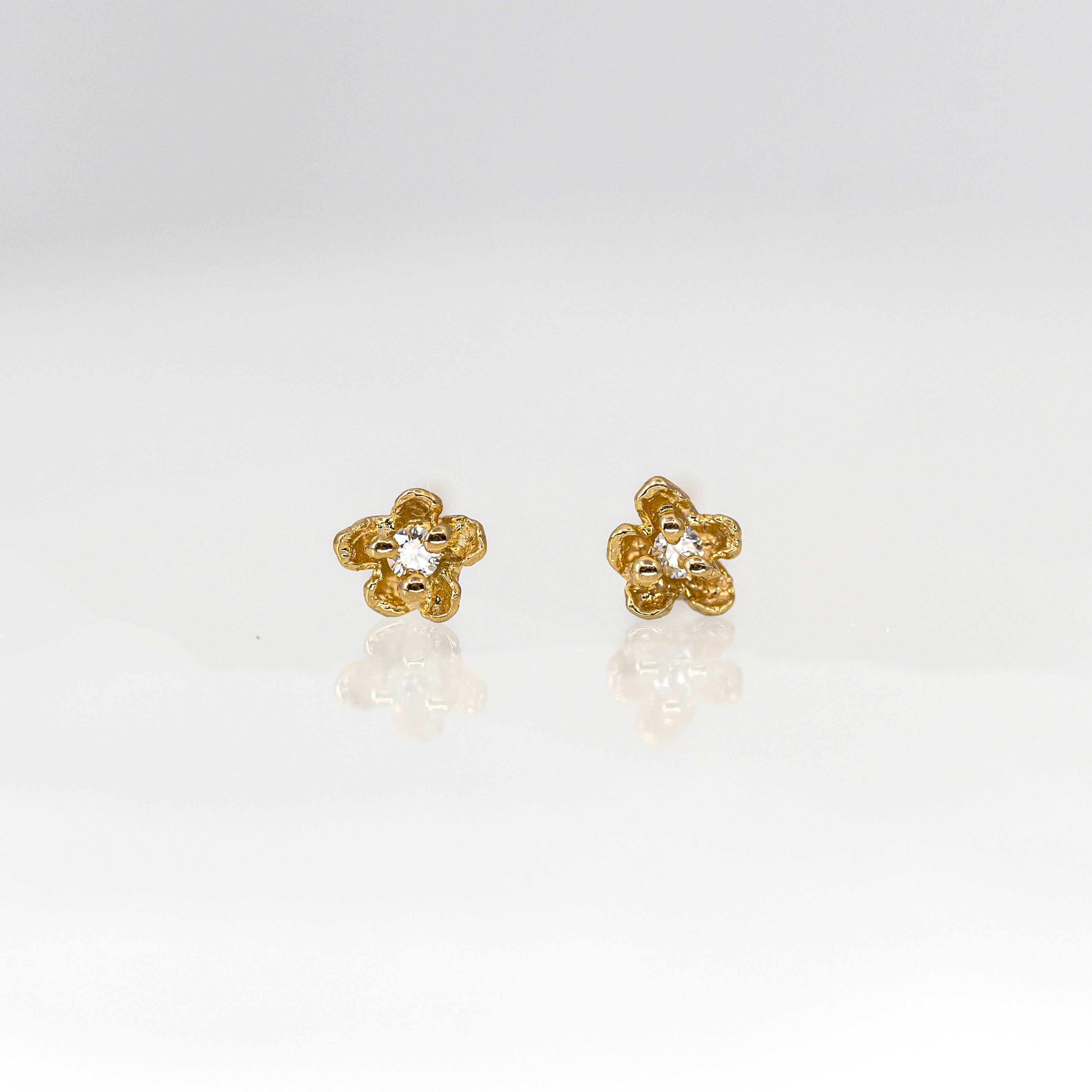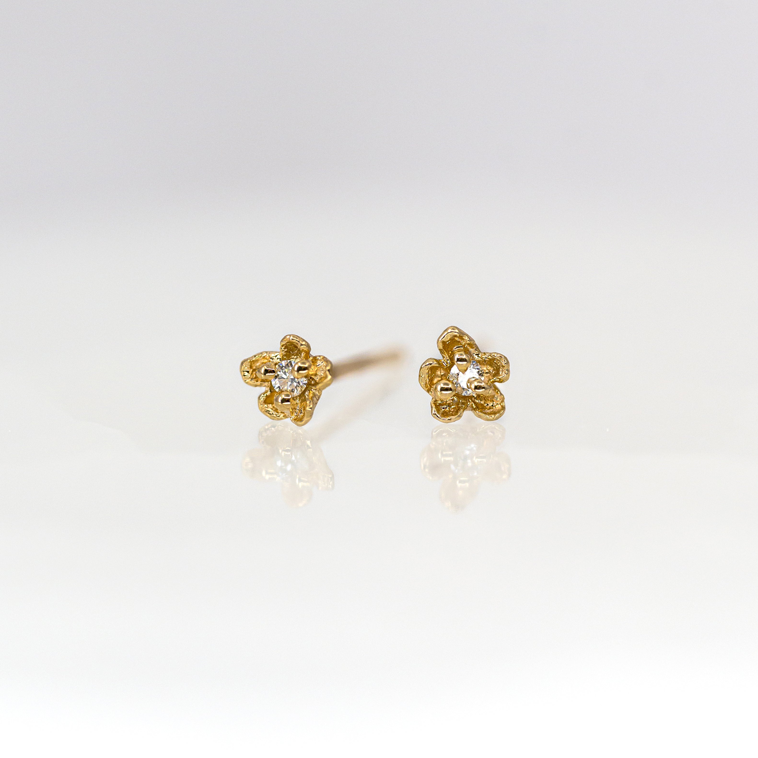Laurie Fleming petite hand carved sculptural Buttercup flower stud earring