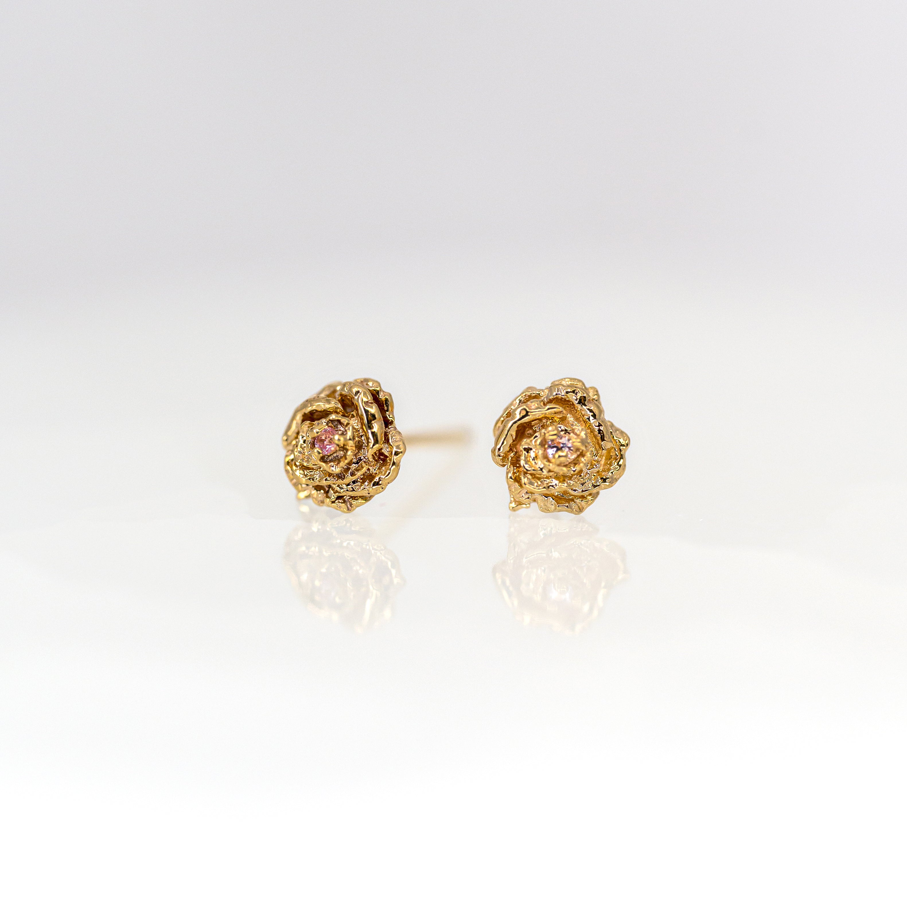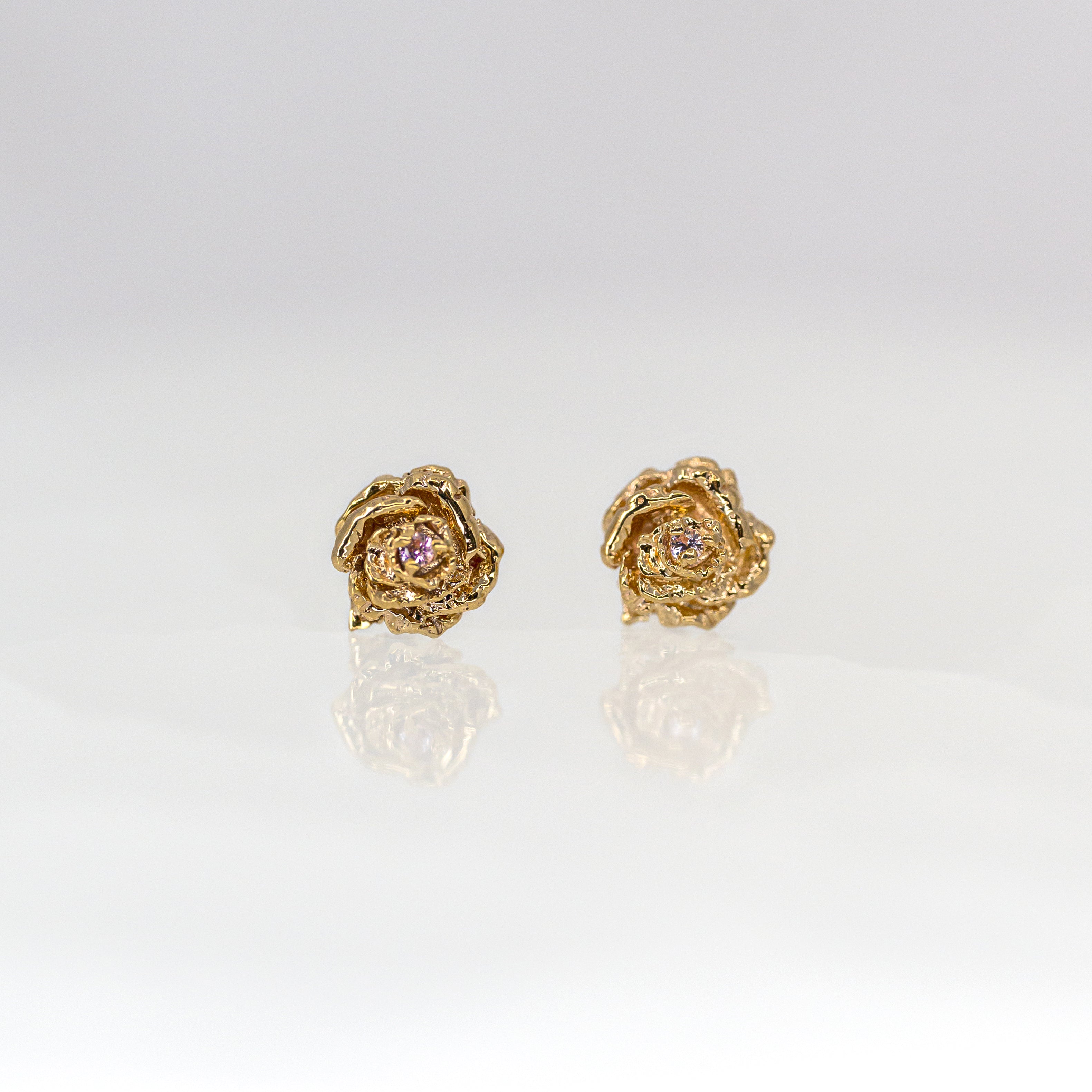 Laurie Fleming dewdrop rose stud with light pink sapphires.