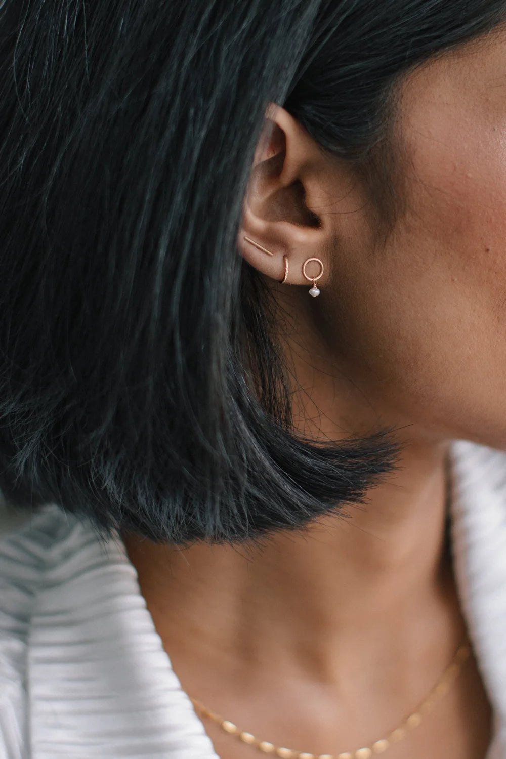 Loops Jewellery open circle Dewdrop stud earrings with pearl drops