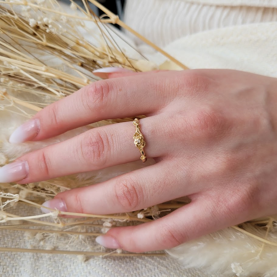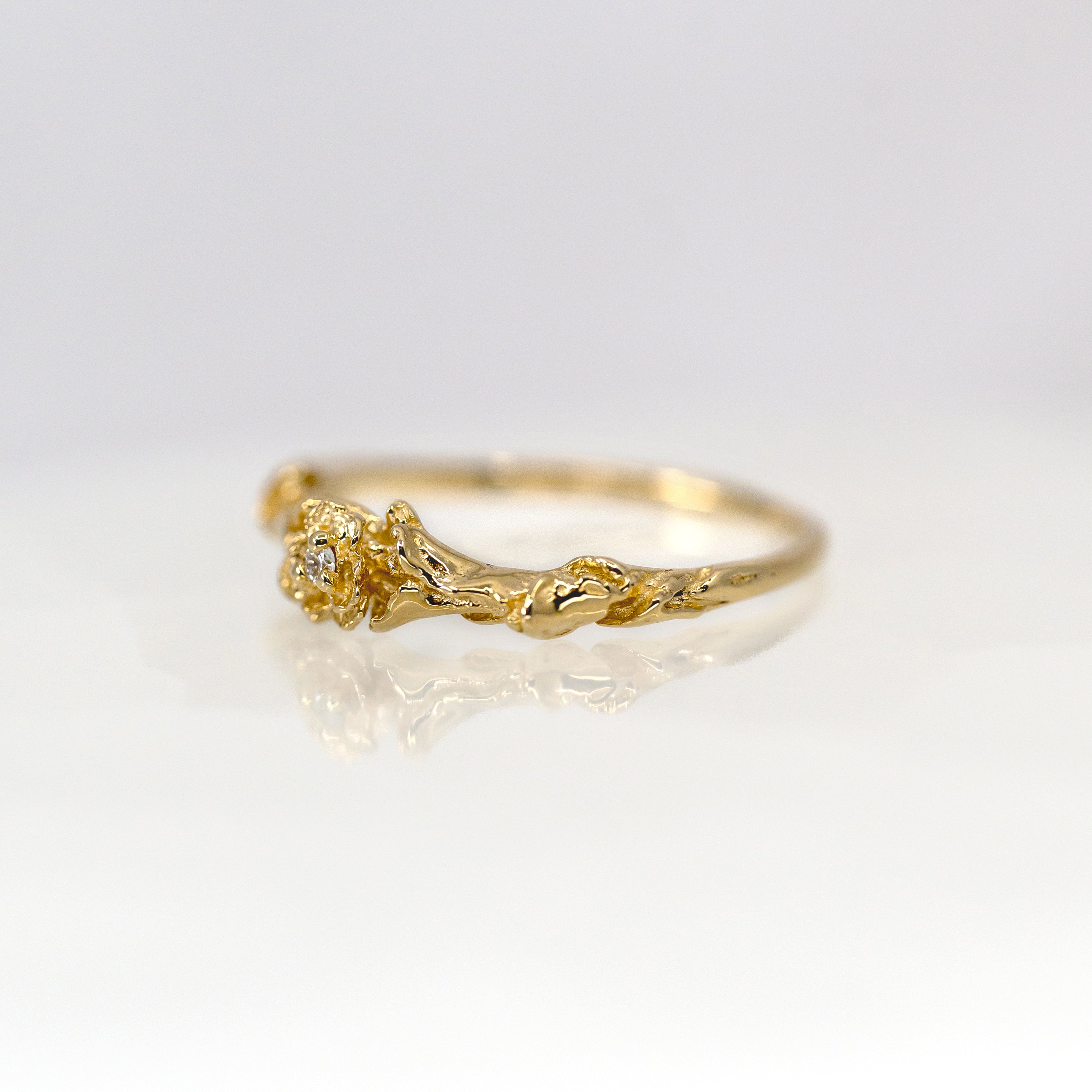 Laurie Fleming Pansy Signet ring with single diamond in a flower petal design
